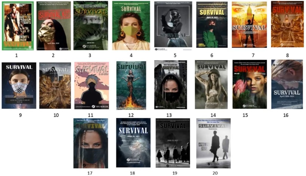 Hosted by third semester Fashion Arts & Business students, Mode Art Poster Exhibit offered our students the opportunity to showcase their skills in Adobe InDesign and Photoshop to create a poster that exemplified the concept of ‘Survival’. The concept – which was also decided by the students – is inspired by the roller coaster experience we’ve all faced during the year 2020. Everyone in attendance at our event had a chance to vote for their favourite poster and the one with the most votes will be used to promote the annual Walk It Out fashion show at the end of the school year. Read the full story: Fashion Students Learn to Survive in a Changing Fashion Industry, by Camille Lopez